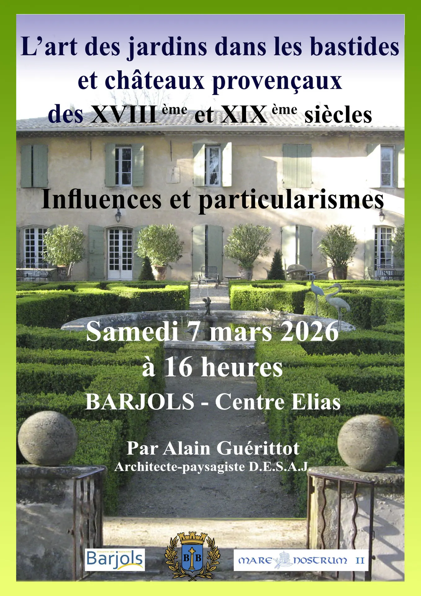Conférence : L'art des jardins dans les bastides et châteaux provençaux du XVIIIème et XIXème siècle
